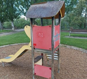 Los vecinos de Puente Castro, a través de la Asoc. de Vecinos Aljama, denuncian el deplorable estado de los obsoletos juegos infantiles del parque del centro de mayores y el olvido del Ayuntamiento de León a la hora de reponer 2 mesas de ping-pong que fueron retiradas hace meses.