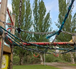 Los vecinos de Puente Castro denuncian el deplorable estado de los juegos infantiles del parque del Centro de Mayores